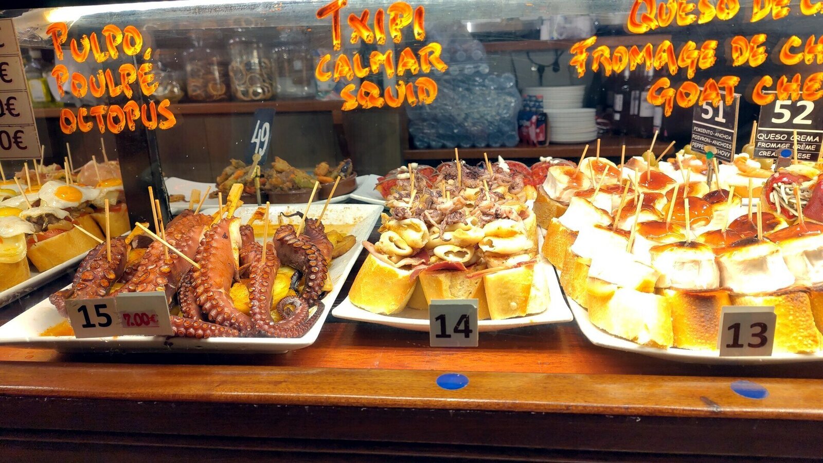 14.06.25 Weiterreise nach Donostia-San Sebastian im Baskenland, wo wir den Abend bei einer Foodtour mit Pintxo-Verkostung gepaart mit spanischen Weinen, genossen. Pintxos oder Pinchos sind die Tapas der Basken. Der Name Pincho stammt von dem spanischen Wort für „Spiess“, denn häufig werden Zahnstocher oder kleine Holz- und Kunststoffspiesse verwendet, um Pincho-Komponenten zusammenzuhalten oder die Pincho-Auflage auf einer Brotscheibe zu halten.