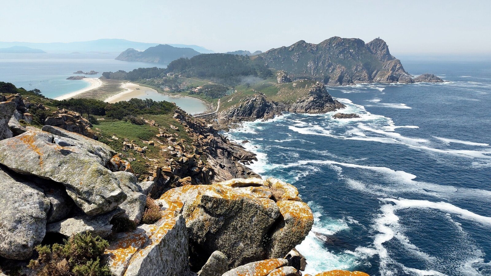 28.06. An der Küste Richtung Süden entlang nach Vigo. Auch hier haben wir einen Tagesausflug gebucht, zu den Islas Cies, welche seit 1980 Naturschutzgebiet sind und seit 2002 zum Nationalpark Islas Atlanticas de Galicia zählen. Den 1200 langen Strand Playa de Rodas, eine Sandablagerung, die die Inseln Do Faro und Monteagudo verbindet, erklärte der britische The Guardian im Februar 2007 zum schönsten Strand der Welt. Wir erkundeten die Insel zu Fuss. Vom Porto de Cies ging es den Camiño do Peito bis zum O Farol do Peito. Auf dem Rückweg über den Mirador da Chan de Chancenlos und Mirador do Alto do Principe über die Ponte do Lago, O Convento bis O Farol do Canaval. Auf dem Rückweg zum Hafen verweilten wir bei einem kühlen Glas Wein im Garten des Restaurants am Campingplatz.