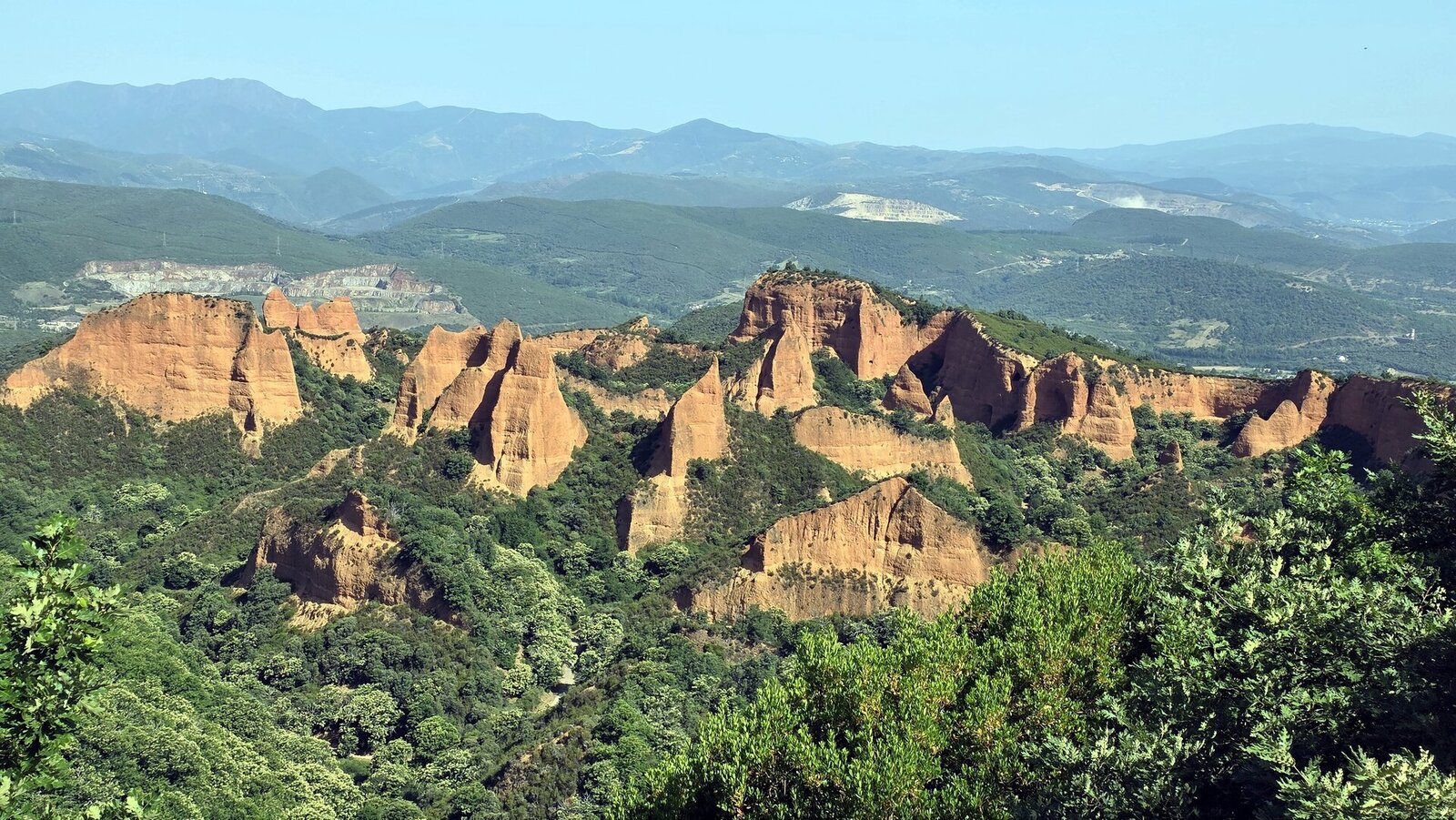 Wanderung durch Las Medulas, die wichtigste Goldmine des Römischen Reiches, seit 1997 UNESCO-Welterbe. Die rot-orange-goldfarbenen Felsen der Las Medulas erheben sich vor uns. Ein eindrucksvoller Ort, der die Geschichte anschaulich werden lässt: Die alten Römer haben hier auf kreative Weise Gold abgebaut. Es wurden Stollen in die Berge getrieben, die danach mithilfe von Wasserkanälen geflutet wurden und auf diese Weise ganze Bergflanken weggesprengt haben. Start am Aussichtspunkt Mirador Orellan. Von hier steigen wir zu den eindrucksvollen Felssäulen ab. Am Ende des Abstiegs gelangen wir durch den Kastanienwald auf die „Senda de Las Valinas“. Auf dieser ausgeschilderten Strecke erreichen wir die Höhle La Cuevona. Ein riesiger Felsdom im roten Gestein. Da auch an diesem Tag satte 35 Grad waren, sind wir direkt nach der Wanderung wieder zum Lago de Carucedo gefahren.